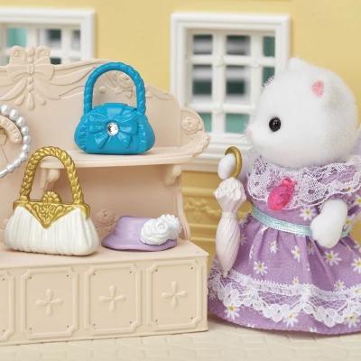 Calico Critters miniature dollhouses, playsets and figures are timeless and classic high-quality toys. The Fashion Showcase Set comes with lovely accessories along with a shelf for displaying them. It’s a perfect set to put inside the Grand Department Store (sold separately).