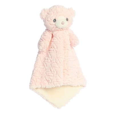 The Huggy Collection features unique and super soft wavy textured fabric. This Huggy Bear Luvster is part blanket and part bear who are perfect for cozy snuggles and naps. This Luvster is a light pink color with a cream interior. With a hand sewn satin nose and dangly arms this bear was made to give the best bear hugs.