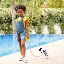 - LITTLE RUNNING FURRY FRIEND – This adorable spotty Dalmatian comes with 3 unique puppy sounds and a detachable safety leash. Grab her leash, she’ll walk and run with you, and be your best furry companion.