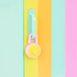 - Stylish Locker: Turquoise locker comes with a stick-on pencil holder, a lightning bolt mirror, a removable lock, stickers, a juice box, and more!