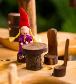 Our Tree Blocksâ„¢ Tree Fort is a magical woodland wonderland where all of our miniature dolls and animals want to live. These pretend play doll forts are made from salvaged branches of rubber wood trees from sustainable forests in Vietnam, so each one is as unique as your child’s imagination. Common features of each fort include a 20″ diam. base, three additional platforms, twelve building branches, seven stackable pieces, a solid wood staircase, two balconies, a rope ladder, a crow’s nest, a swing, a bridge, and detailed assembly instructions. The assemble fort is approx. 28″ tall (adult assembly is required). Greenery is not included, but feel free to forage for natural materials like moss, leaves, and wildflower blossoms to make your fort attractive to passing fairies and gnomes!