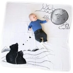 - Blanket Swaddle – The cute Mama Bear Milestone Blanket measures 51″ x 51″ and is made from 100% cotton. The hues of black, white, and gray will fit effortlessly into any nursery.