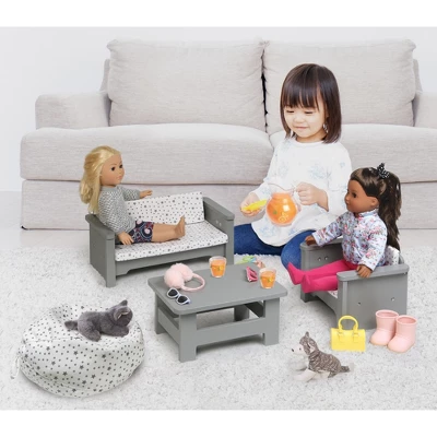 - Set includes doll couch, chair, table, and beanbag