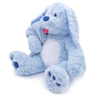 A plush blue puppy that comes stuffed with an ultra-soft double-layered baby blanket zipped up inside. The new “Blankie Besties product line is one of Plushibles best yet. These collectible characters come with an ultra-soft dual-layered micro plush blanket that measures 42 x 32 inches inside. The body is lightly padded with stuffing so they’re soft and huggable with or without the blanket inside. Several new characters will be introduced and available in the fall just in time for gift-giving this holiday. The characters include Pawley the bear, Benny the Bunny, Owliver the Owl, Farley the Fox, Filip the Frog, Blu-Boo Dog and Pinkie Doodle Dog. Each is made of the highest quality plush, and you cant help but touch their incredible softness. These new “Blankie Besties” offer the security of a best friend and a soft blanket to wrap up in, perfect for cuddling sessions or nap time.