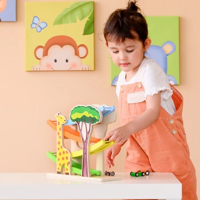 Give your little ones long-lasting entertainment while encouraging learning with the Teamson Kids Preschool Play Lab Wooden Safari Ramp Racer with Animal Print Cars. This action-packed kids toy features a natural wood finish with brightly-colored accents for a fun addition to your child’s bedroom or play area. This racing set includes curved ramps and 4 animal print racing cars to provide your little one with hours of entertainment. This racing activity set builds hand-eye coordination as the race cars drop down through the ramps. Constructed from durable wood, this activity station is built to provide your little one with long-lasting fun. This racing car set measures 3.54″ x 10.04″ x 12.20″ to bring your child long-lasting entertainment without taking up too much space in their bedroom or play area. The Teamson Kids Preschool Play Lab Wooden Safari Ramp Racer with Animal Print Cars is recommended for children ages 3 years and up.For over 20 years, Teamson Kids has been manufacturing products of the highest quality along with the best craftsmanship. We take pride in our expertly crafted high quality children’s wooden furniture designs and strive to exceed all safety standards. We create beautiful pieces that encourage your child’s imagination while seamlessly fitting into your home.